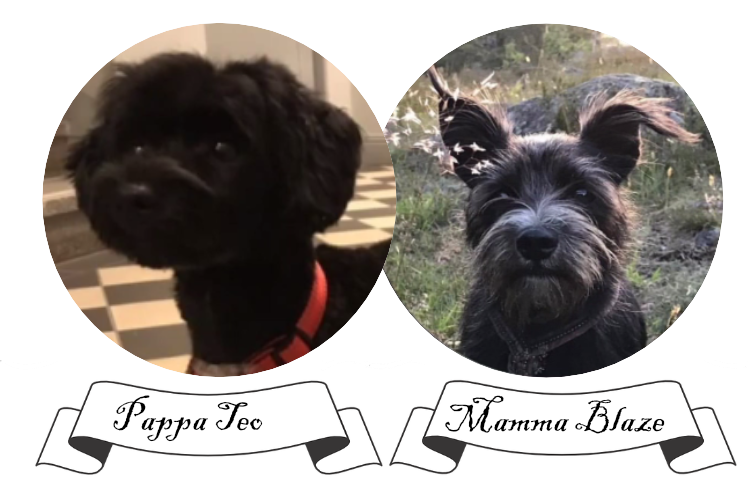 Jag är en blandras. Min mamma heter Blaze. Hon är en blandning av minischnauzer, jackrusellterrier och chihuaua. Min pappa heter Teo. Han är en blandning av toypudel och yorkshireterrier. Husse och matte brukar ofta säga om mig att jag är smart som en pudel med integritet som en schnauzer och temperament som en terrier.